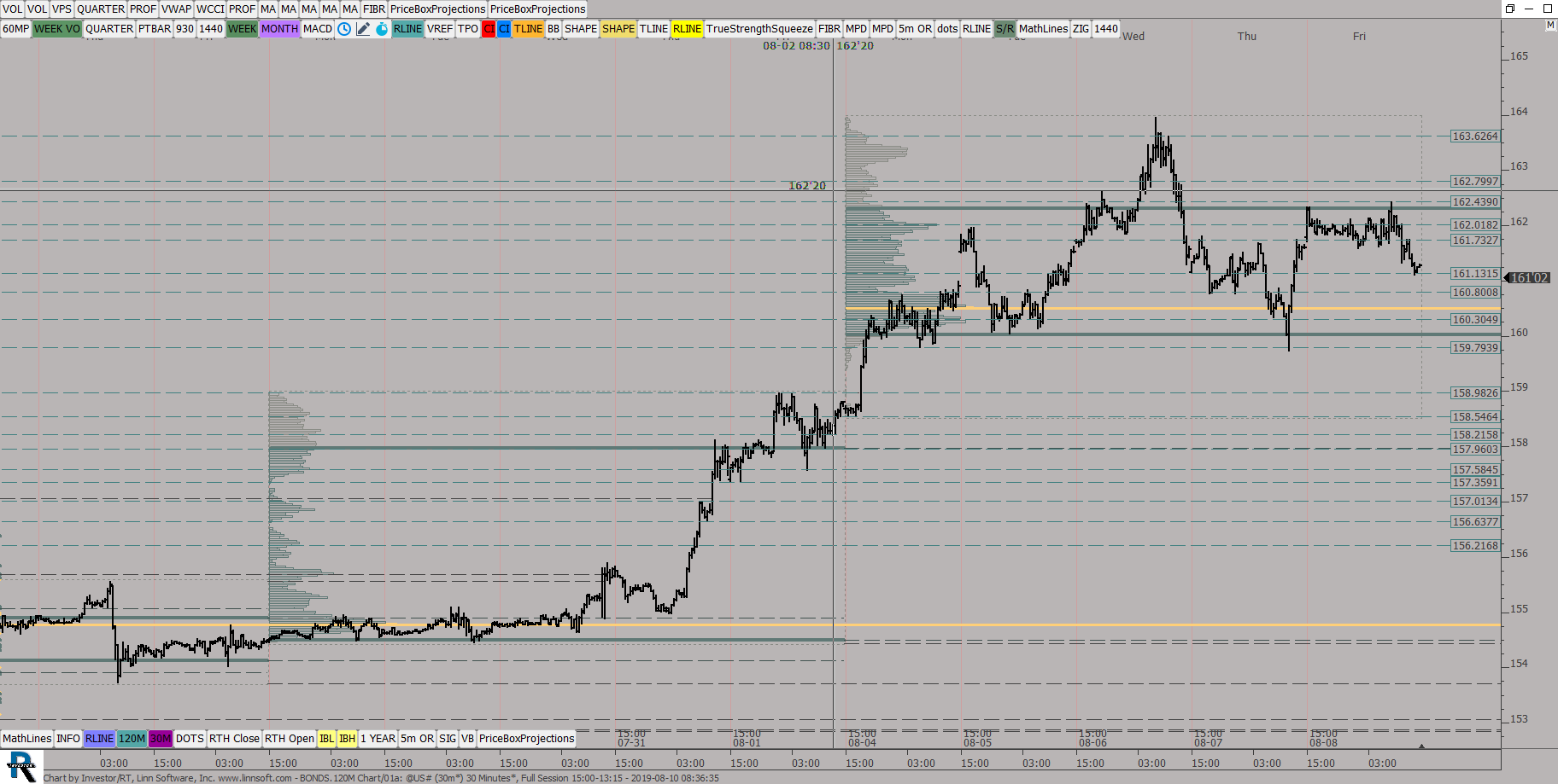 Weekly VP, with 120 Min Candles. This chart was uploaded by Investor/RT 13.6.3 showing symbol: @US#. |