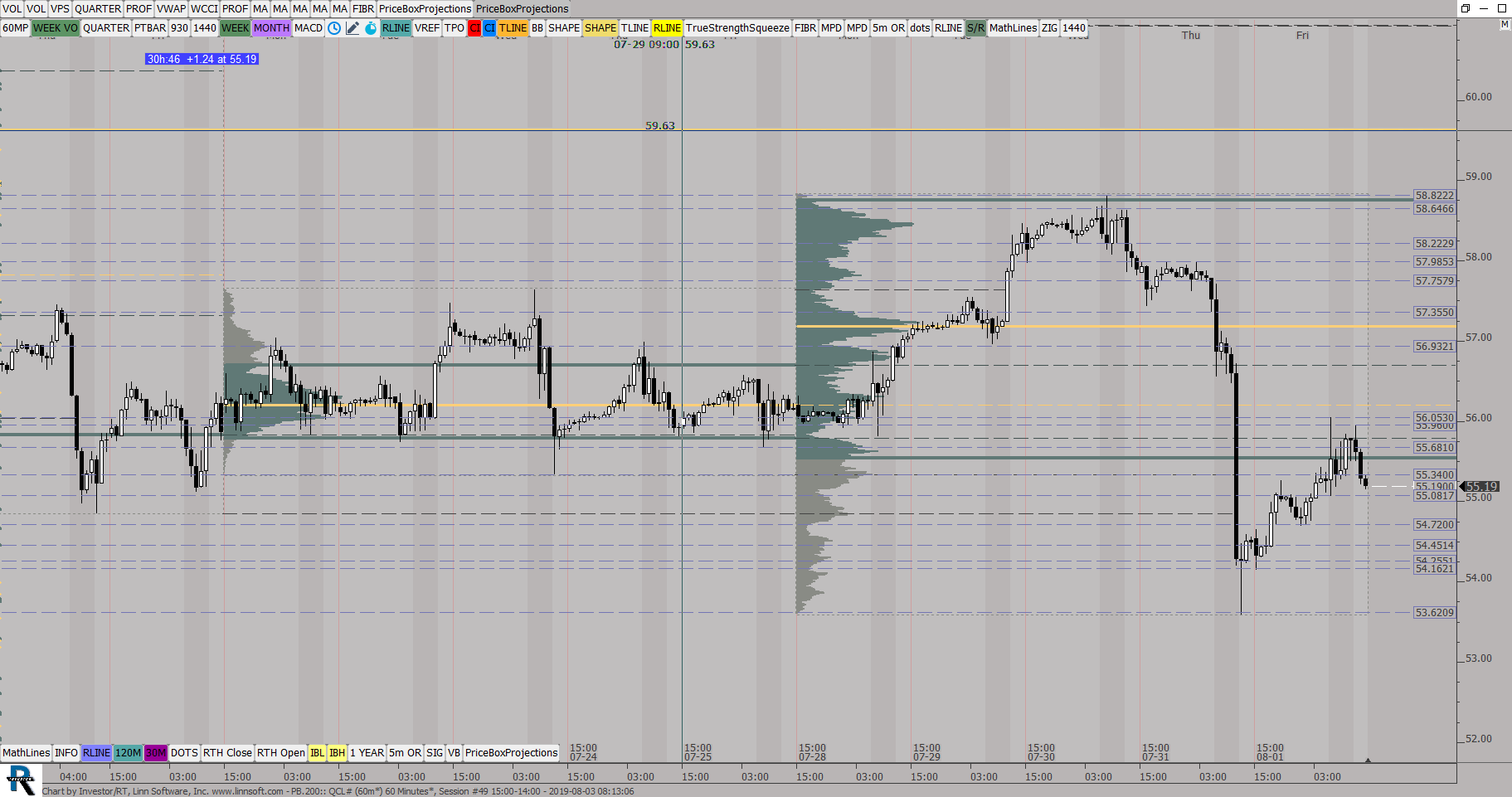 Weekly VP, 120 min Candles. This chart was uploaded by Investor/RT 13.6.2 showing symbol: QCL#. |