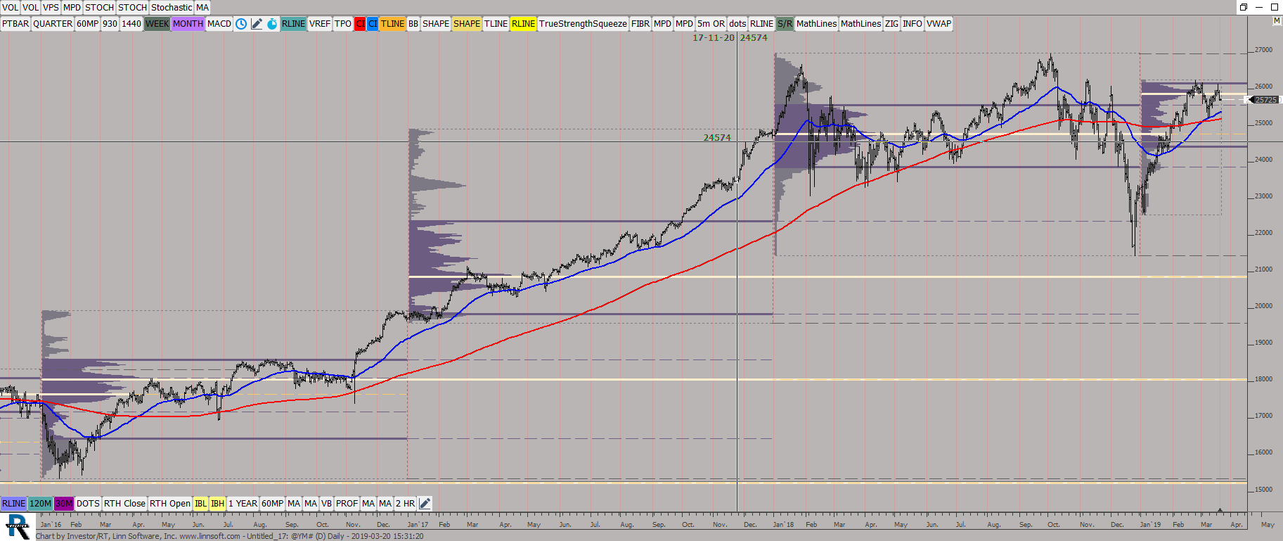 Monthly Profiles, Daily Bars. This chart was uploaded by Investor/RT 13.5.24 showing symbol: @YM#. |