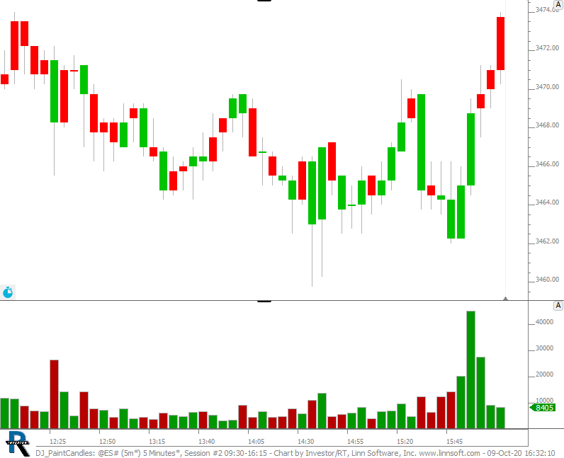 Volume painted based on whether the bar closed up or down. This chart was uploaded by Investor/RT 14.2.1 showing symbol: @ES#. |