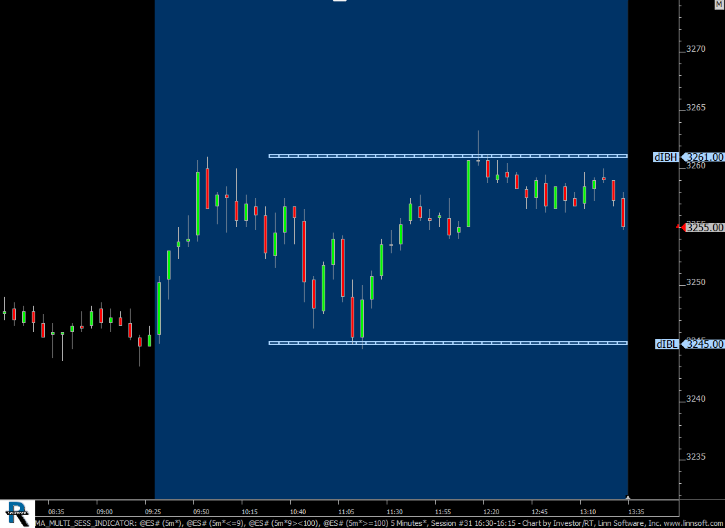 High/Low of 1st 30 seconds of day session. Midpoint of 1st hour of trading of day session. This chart was uploaded by Investor/RT 14.1.3 showing symbol: @ES#. |