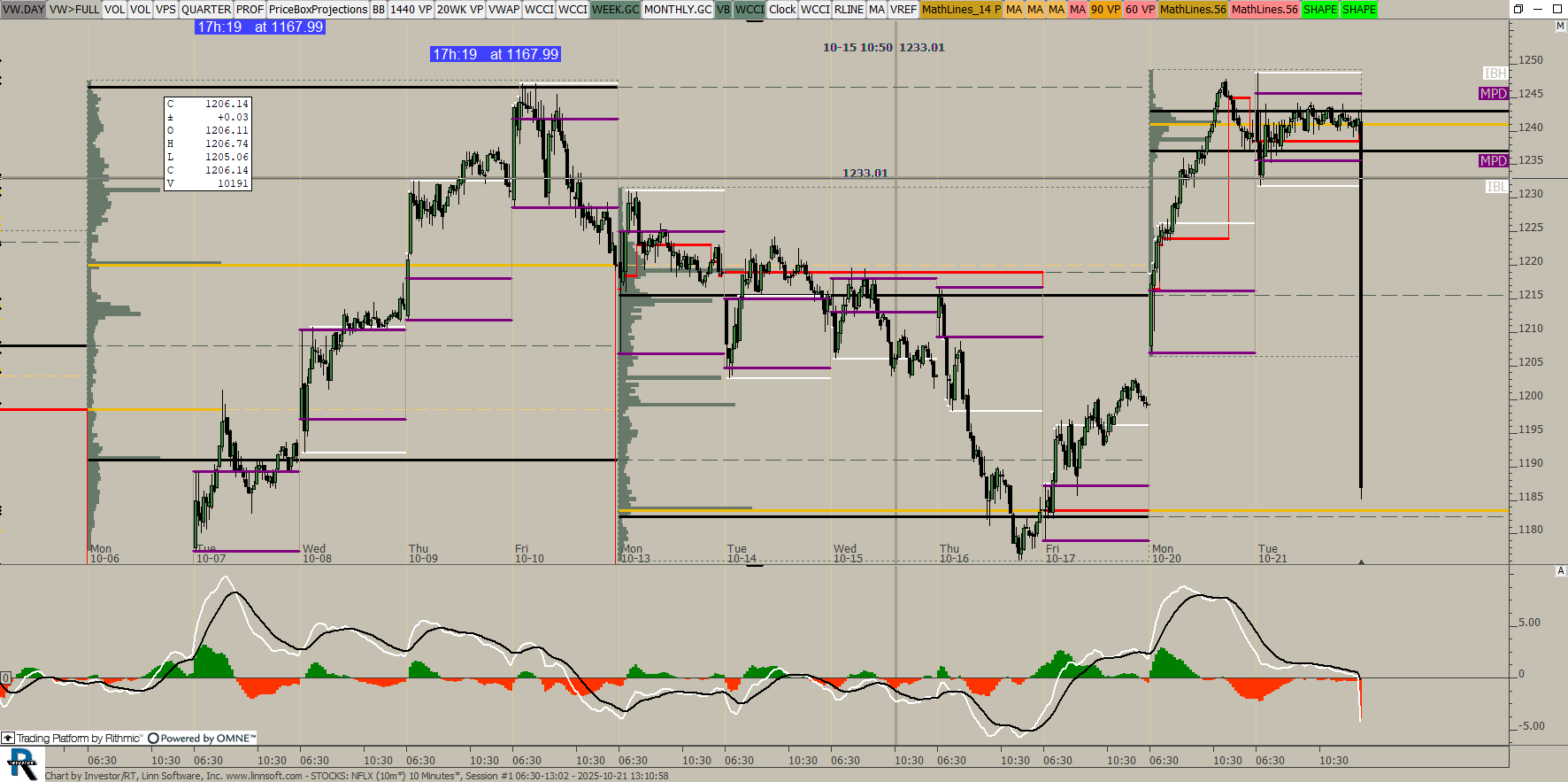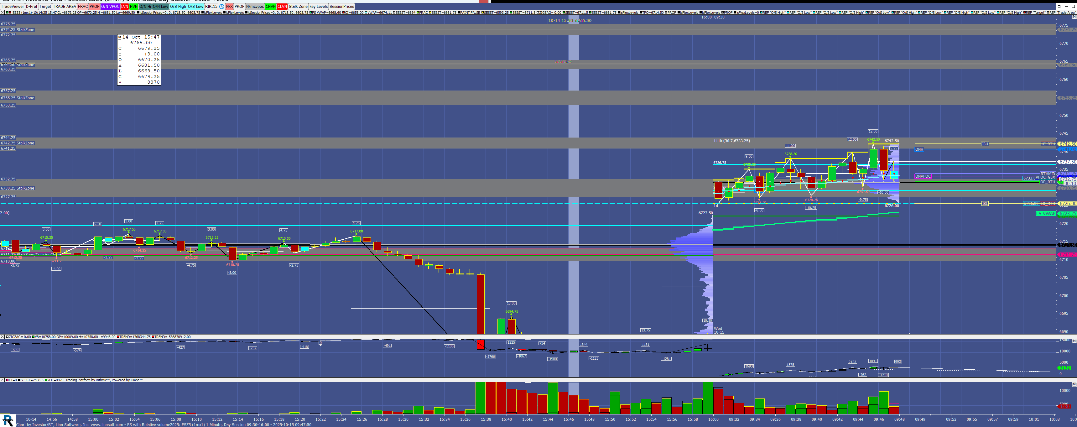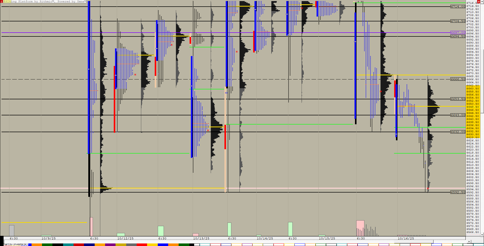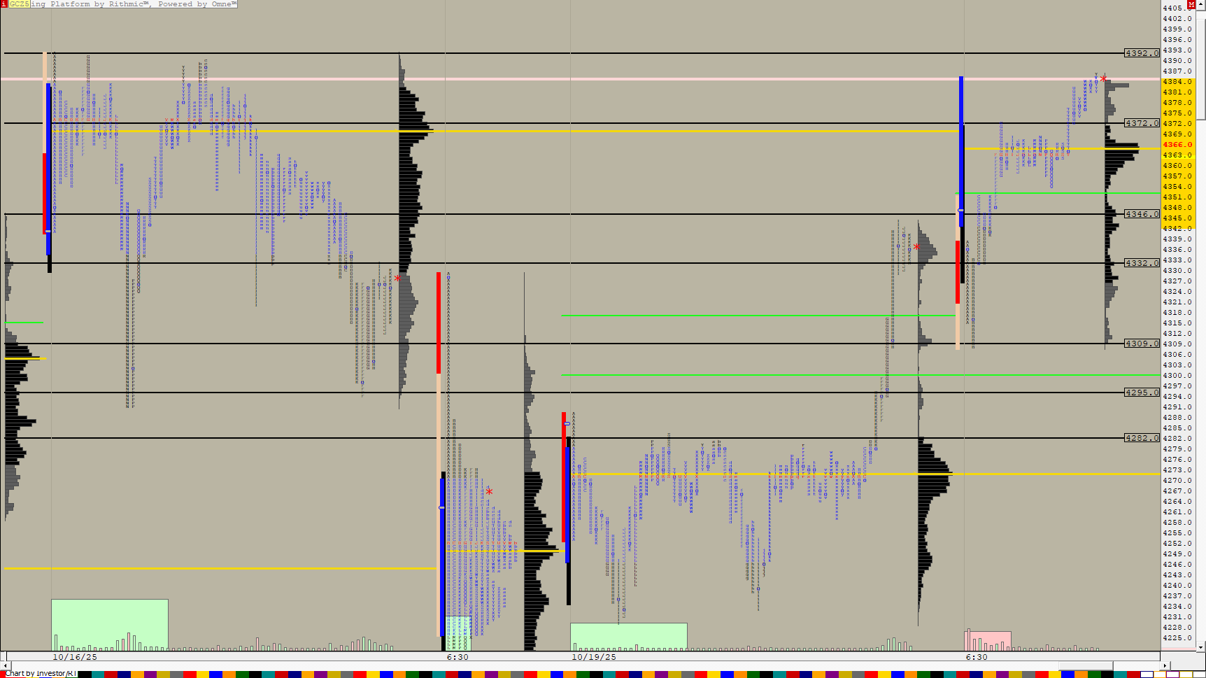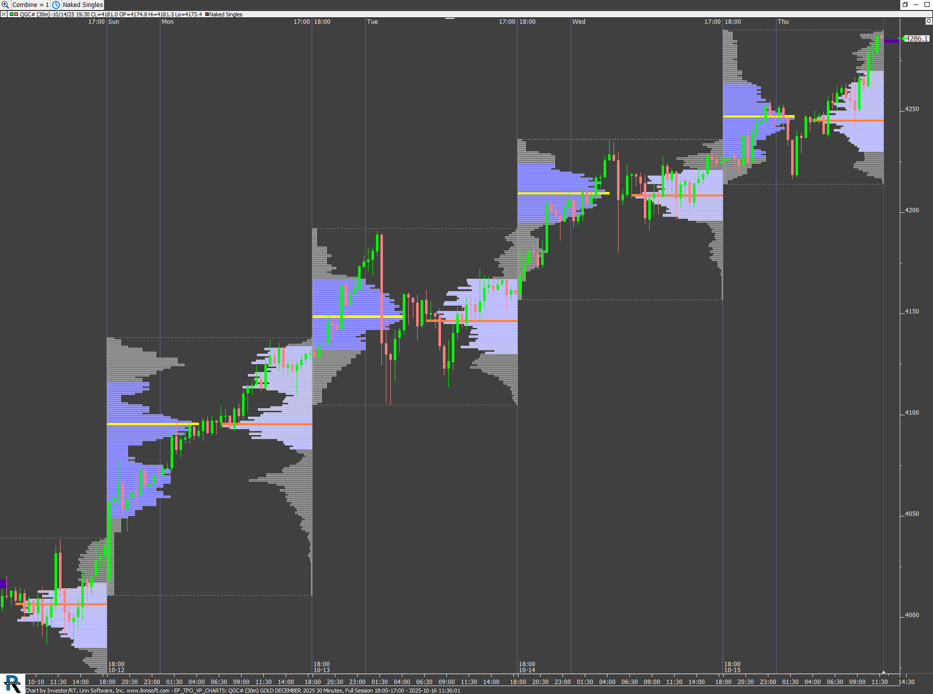 TPO and Volume Profile on the same 30 minute charts - A Combine (set C#1) button controls the price per row input and another button adds naked singles. This chart was uploaded by Investor/RT 16.1.10 showing symbol: QGC#.