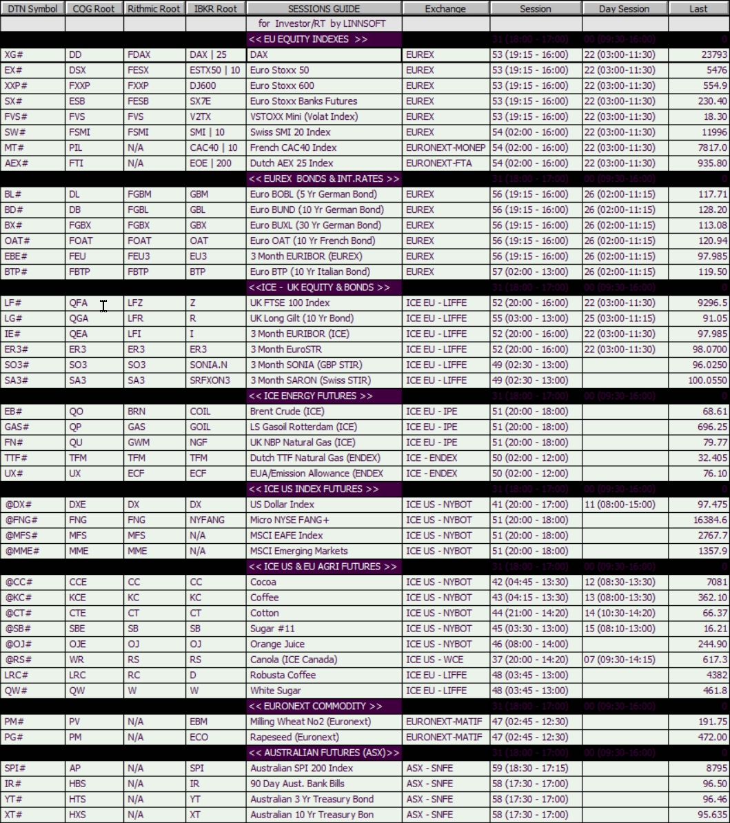 Note: ICE EU and US futures are rarely traded by "retail" day traders as they don't offer a reduced exchange data fee for non-professionals. However, please note that, for every ICE market, you have access to all the tick data with your DTN MA subscription (or to delayed data whenever you have a live IQ feed subscription)