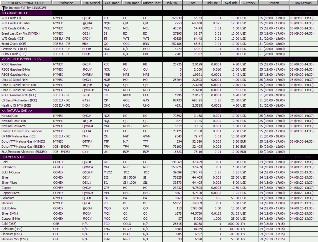 Warning: not all DTN contracts start their root code with a @ QCL# (Crude Oil) or QGC# (Gold) are among the exceptions.