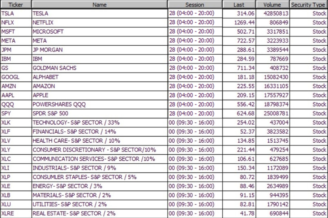 Part 5 - A short sample of DTN Stocks & ETF symbols
